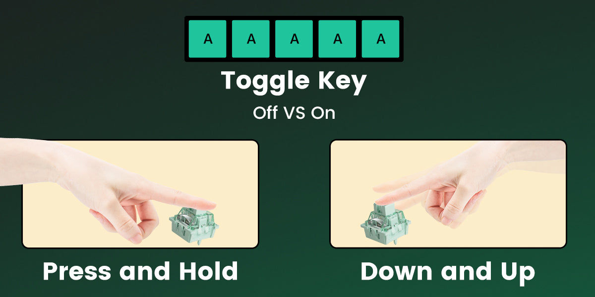 Toggle Key (TGL) TGL, or Toggle Key, transforms a key into a toggle switch. When you press this switch, you can activate one of two scenarios: either continuously hold down the key/function, or trigger the key/function multiple times at a high frequency. |