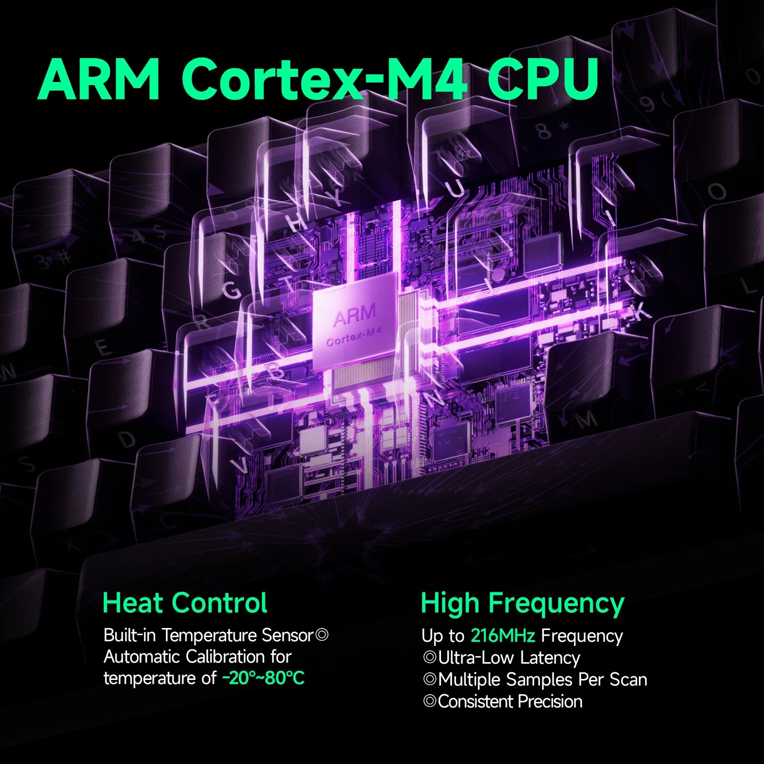 ARM Cortex-M4 CPU The powerful CPU delivers enhanced processing power with low energy consumption. It features automatic calibration between -20°C and 80°C, ensuring faster performance and extended battery life (for wireless models only). |