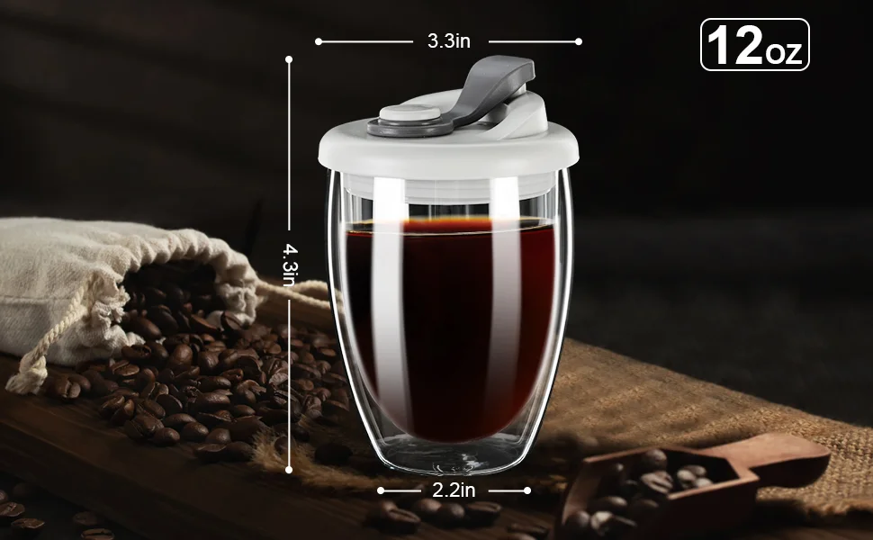 【WIDE VARIETY OF USES】Our glass coffee mug has a crystal-clear appearance, smooth and delicate lines, feel good and easy to hold. Clear glass coffee mugs are perfect for brewing tea, coffee, lattes, smoothies, desserts and juices. Whether at home or out camping, the silicone lid double walled glass coffee mug can provide you with a lot of help.