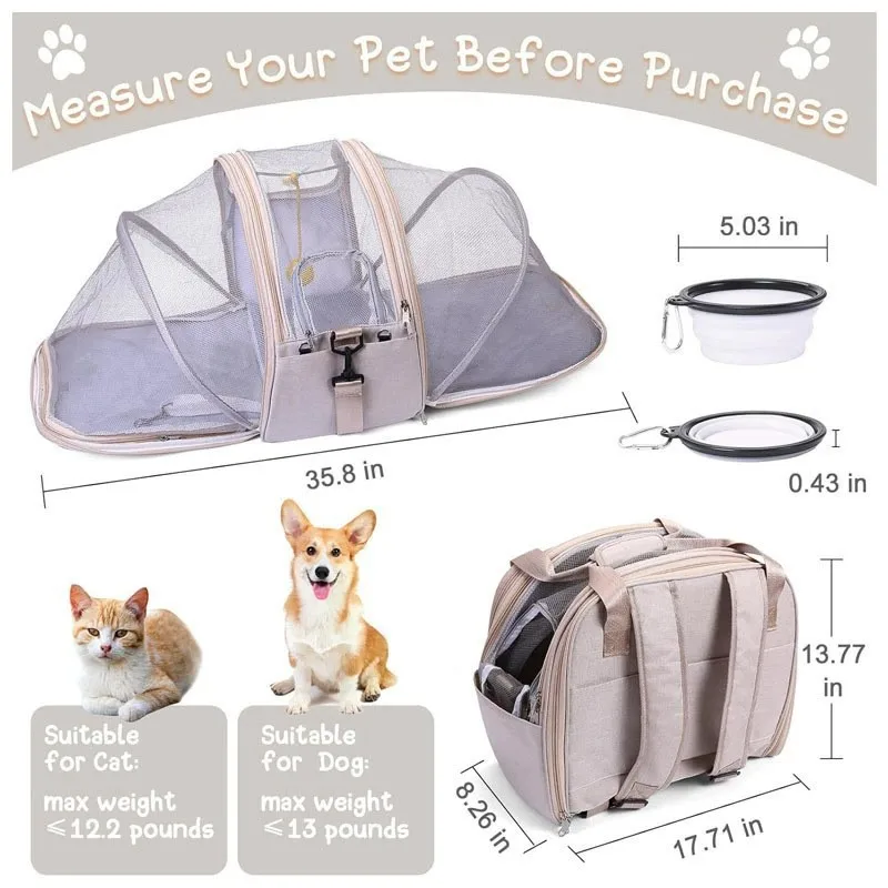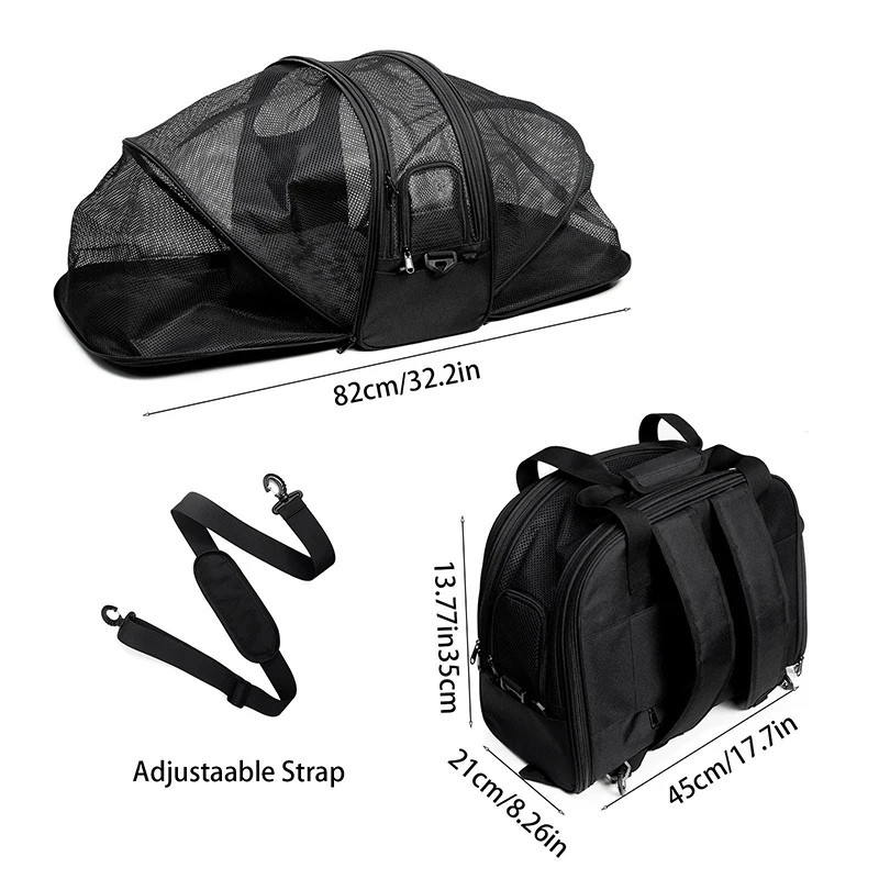 This pet carrier can be unfolded to both sides, creating more space for your cat to lie down or move around.
