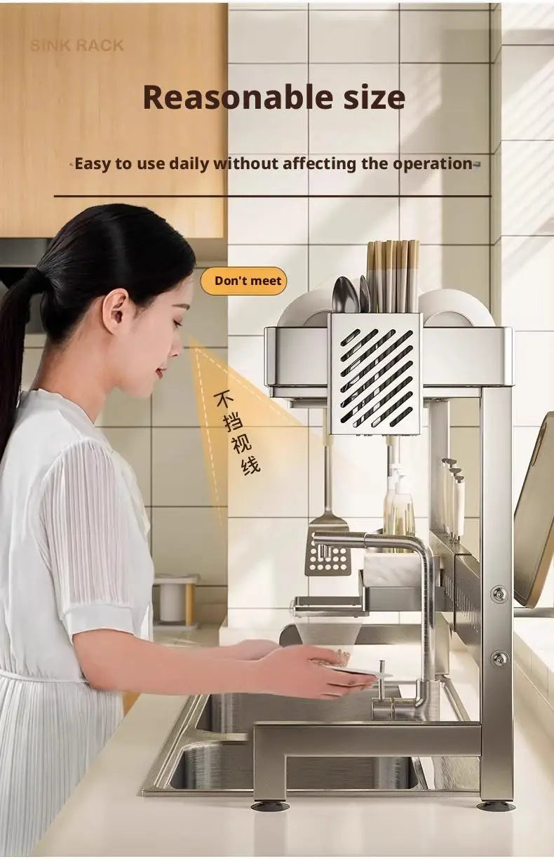 Easy to Install: The sink drying rack for kitchen is easy to assemble without additional tools. The chopstick holder, cleaning plate and cutting board holder can be adjusted according to storage requirements