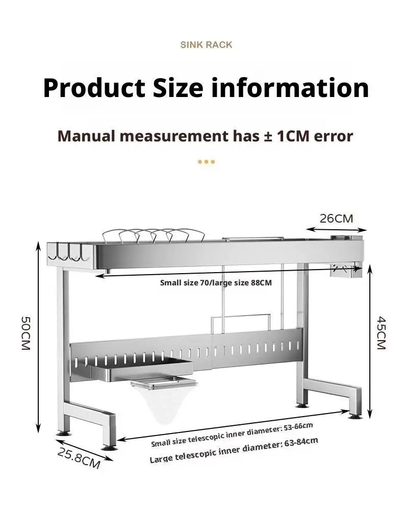 Adjustable Length: The adjustable length of this over the sink drying rack is from 53-68cm or 63-88cm, which can meet most of the needs of single and double sinks. The height of the faucet should be less than 45cm/17.7in