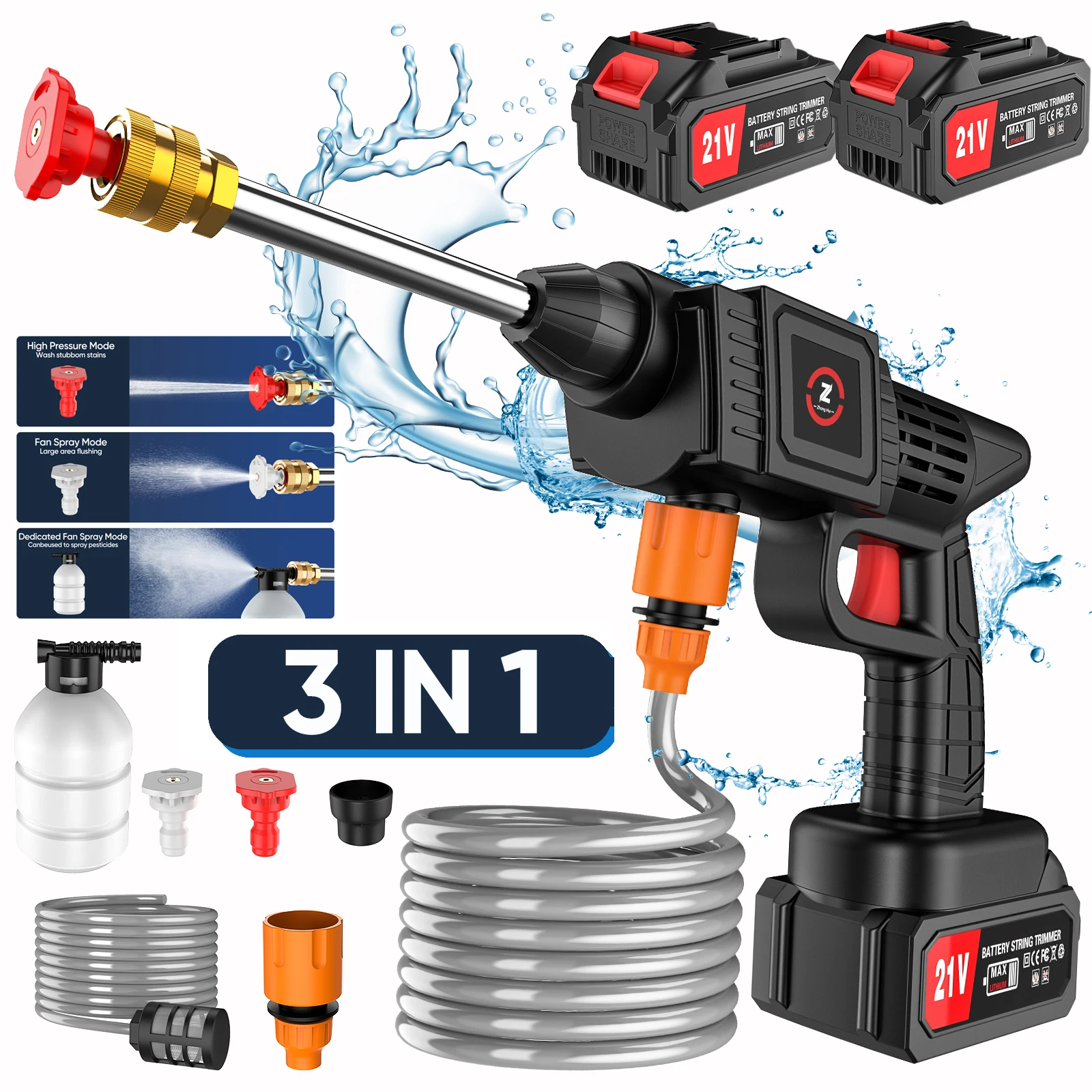3. Multi functional nozzle: The high-pressure gun has a multifunctional nozzle with multiple water types and adjustable pressure, suitable for different application scenarios. The cordless design also allows for greater flexibility and freedom of movement.
