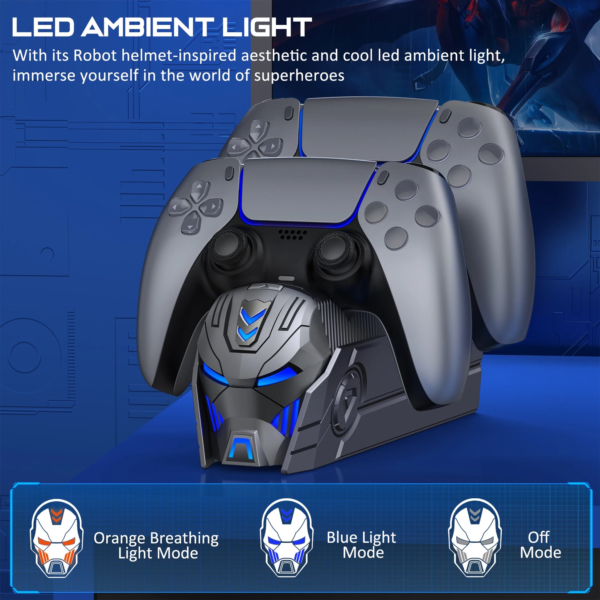 【Cool Design】With its Robot helmet-inspired aesthetic, immerse yourself in the world of superheroes as you recharge your controllers and prepare for epic gaming battles ahead. Whether you're a casual gamer or a hardcore enthusiast, this PS5 Controller Charger Station is an absolute must-have for every PlayStation 5 owner. Don't miss out on the opportunity to add a dash of superhero flair to your gaming setup