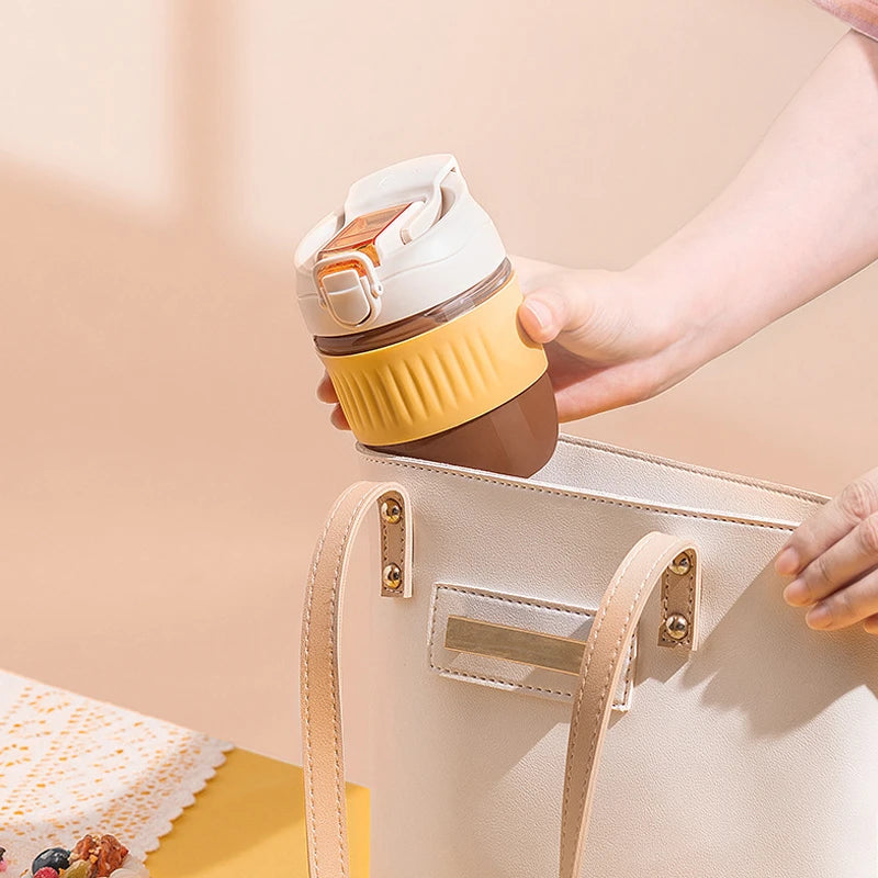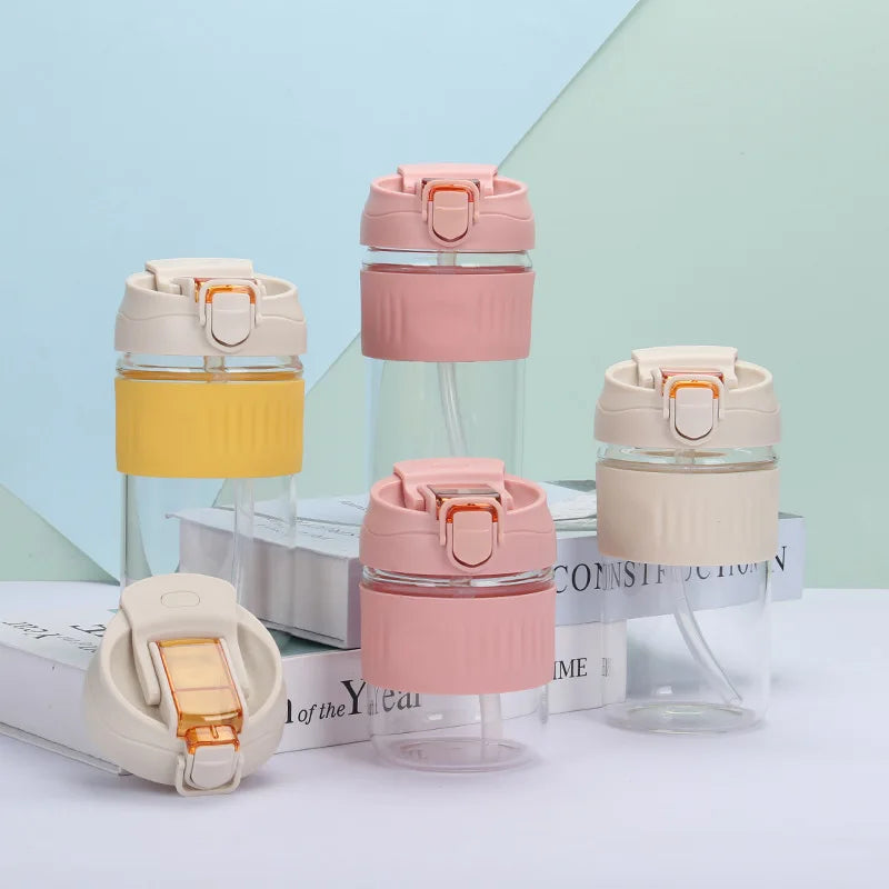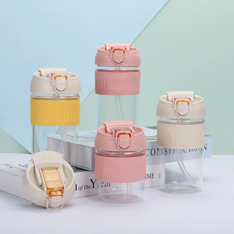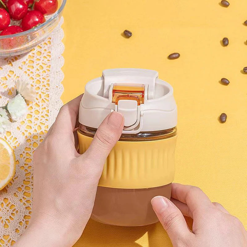 Holaroom Glass Water Bottle Portable Coffee Mug With Straw Anti-scalding Glass Bottle
